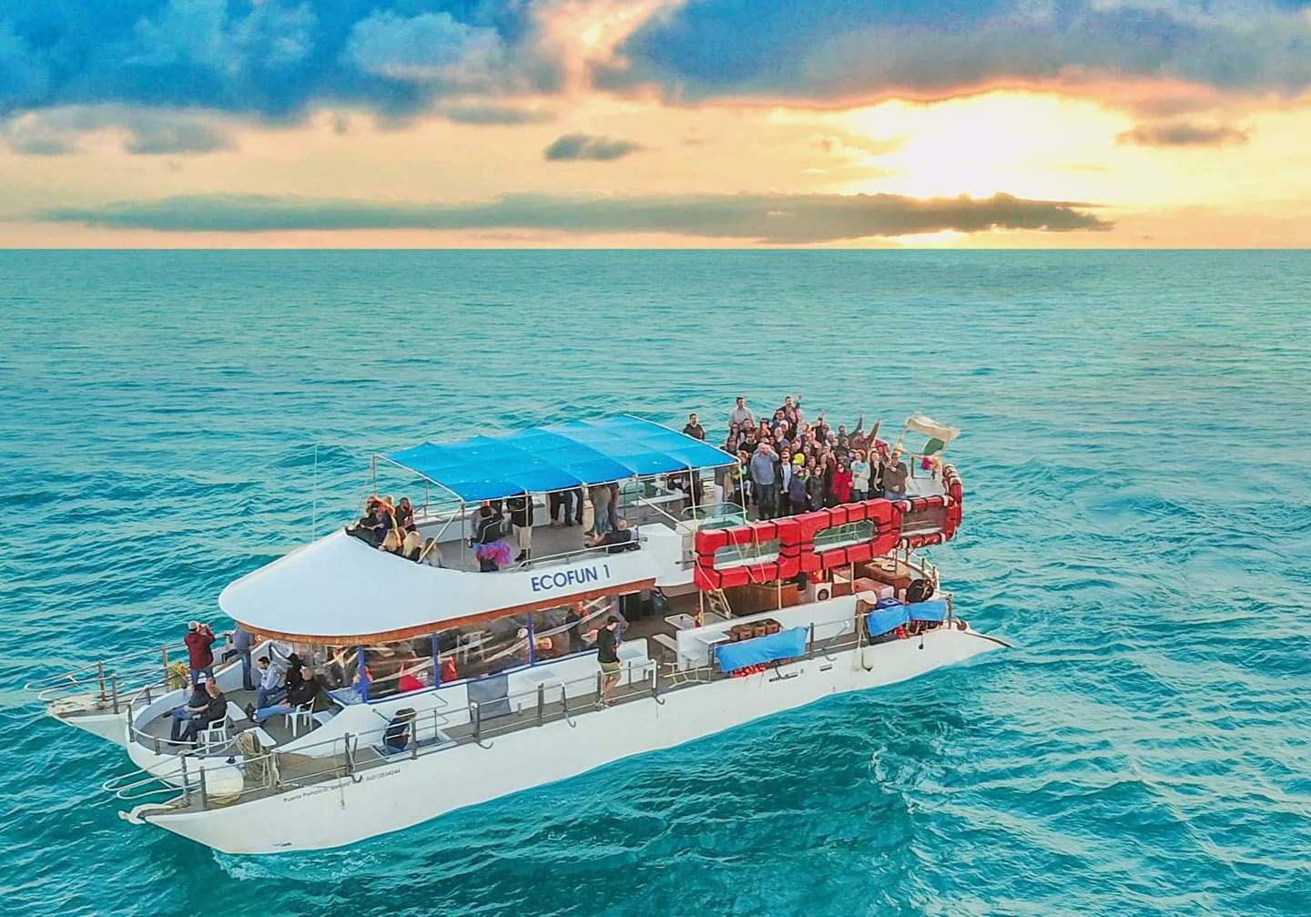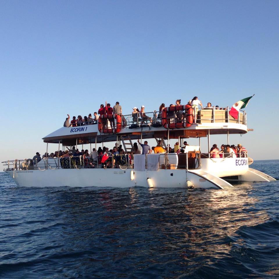 Check for the next departure from the Fonatur Dock and experience an ‘Up-Front’ seat on ECO FUN 1 to witness our sun splashing into the sea.  Open bar, soft drinks and snacks are served and will have the entire family bidding goodbye to another day of fun in the sun!